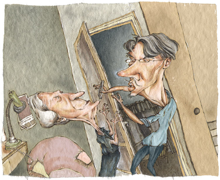 هنا انتهت المكالمة. أعدتُ سماعة الهاتف إلى مكانها، وتوجّهتُ إلى الرسمة أبحث عن "مرض الجلد" الذي تحدثت عنه الكاتبة. نظرتُ إلى الجدة المرسومة، ولم أفهم شيئًا في البداية. ثم، فجأة، انفتح أمامي المعنى. كما ذكرت، كان ذلك قبل نحو عشرين عامًا، وكانت الكاتبة حينها جدة بالفعل، وهي اليوم أكبر سنًا، لكنها كانت آنذاك جدة شابة، وكانت خائفة. لم تكن تريد أن يظن الأطفال أنها هي الجدة المرسومة: جدة بأنف يشبه حبّة البطاطا ونظارات مضحكة. أرادتني أن أرسمها مثل دمية "باربي" مسنّة.