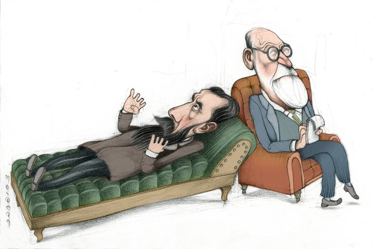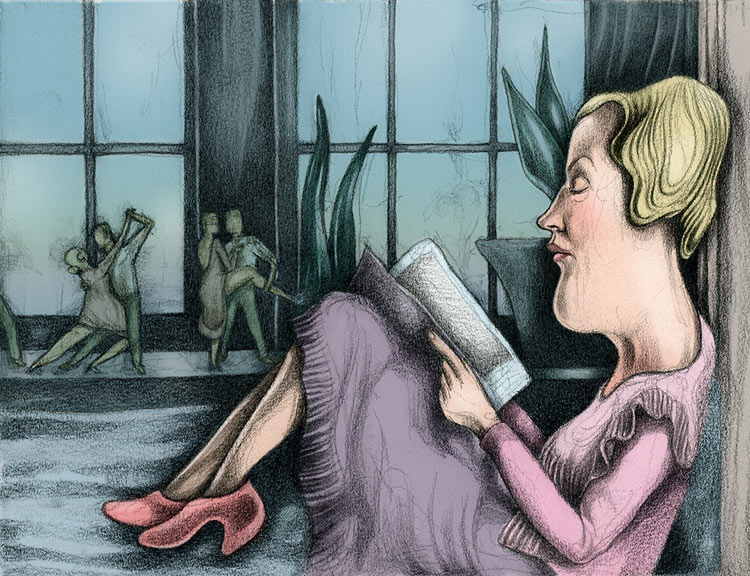 كان على غلاف أحدها رسم غروتسكي رائع – لا أذكر ما هو بالضبط، لكنني نظرت إليه، ثم نظرت إلى أشجار السرو الواقعية المذهلة التي رسمها هيرشبرغ، وفهمت: