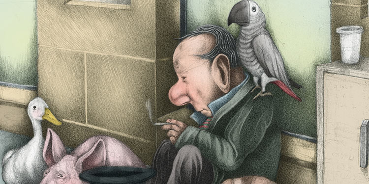 تذكّرتُ كيف روى أحد روّاد مقهى "كسيت" ذات مرة عن أبراهام حلفي، أنه خرج من المقهى عند المساء، هزيلًا، قصير القامة، مرتديًا معطفًا طويلًا. فإذا بعصفور، من قمة شجرة في الشارع، يُلقي بفضلاته على صلعته اللامعة. قال الراوي إن حلفي اكتفى بمسح رأسه، ثم رفع بصره إلى الأعلى، وابتسم بأسى، وقال: " أما زينة الطيور، فللأغنياء..." -فَرَقّ قلبي له.